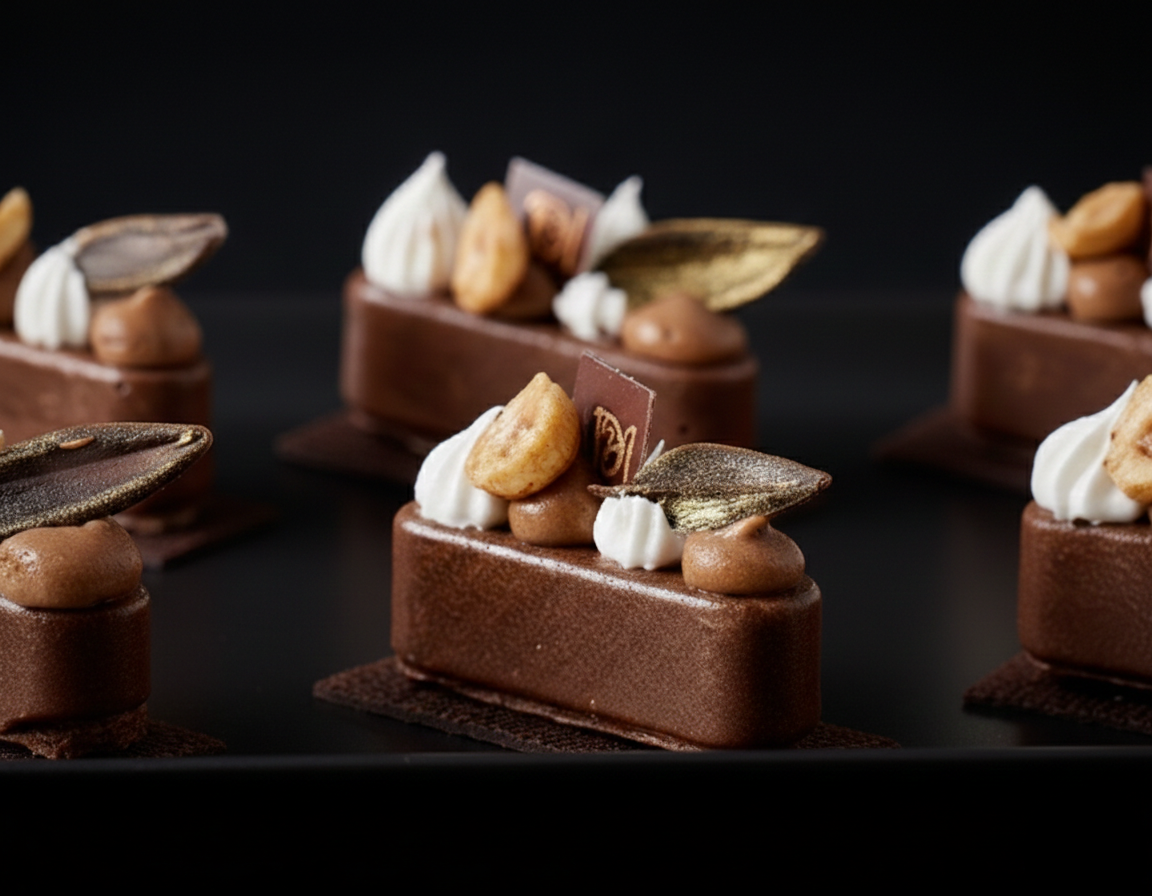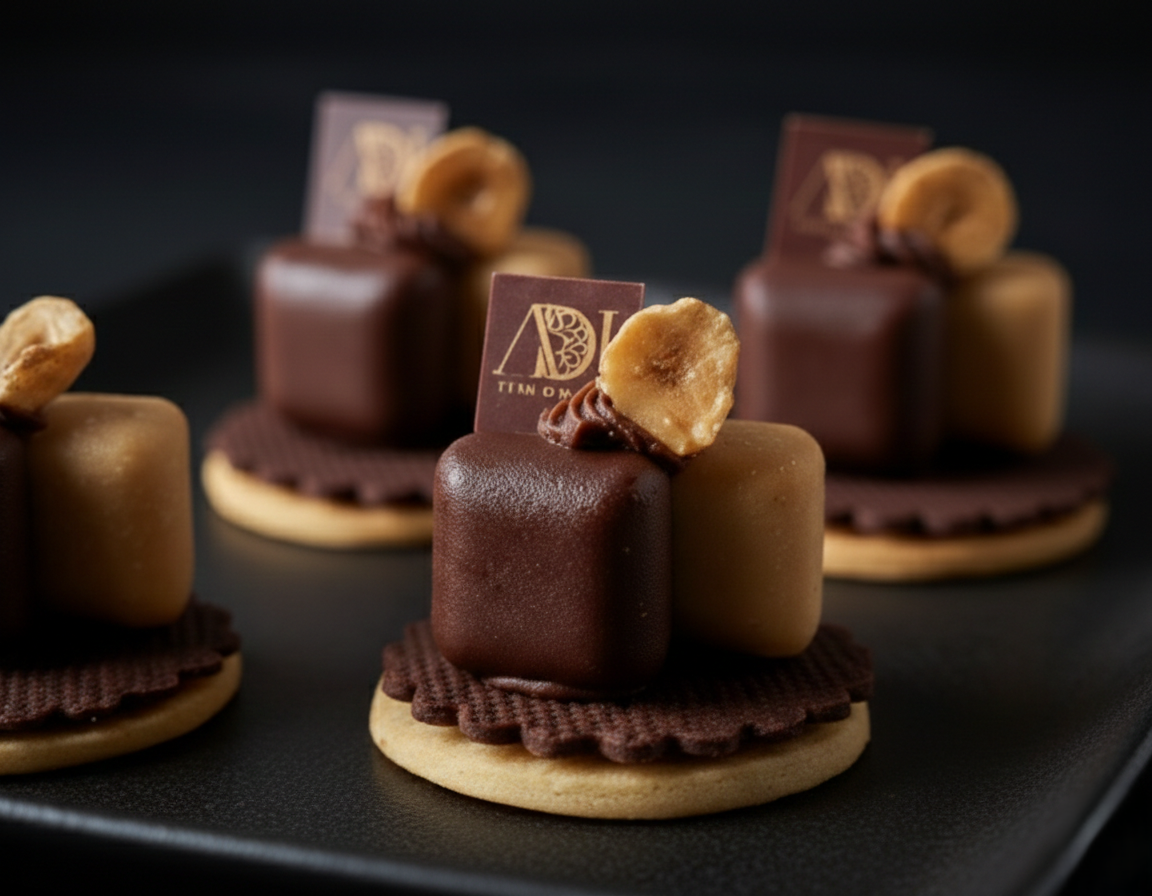 מארז מהודר המכיל 25 פטיפורים, מעוטר בסרטי סאטן תואמים וניתן בשקית בד ממותגת.