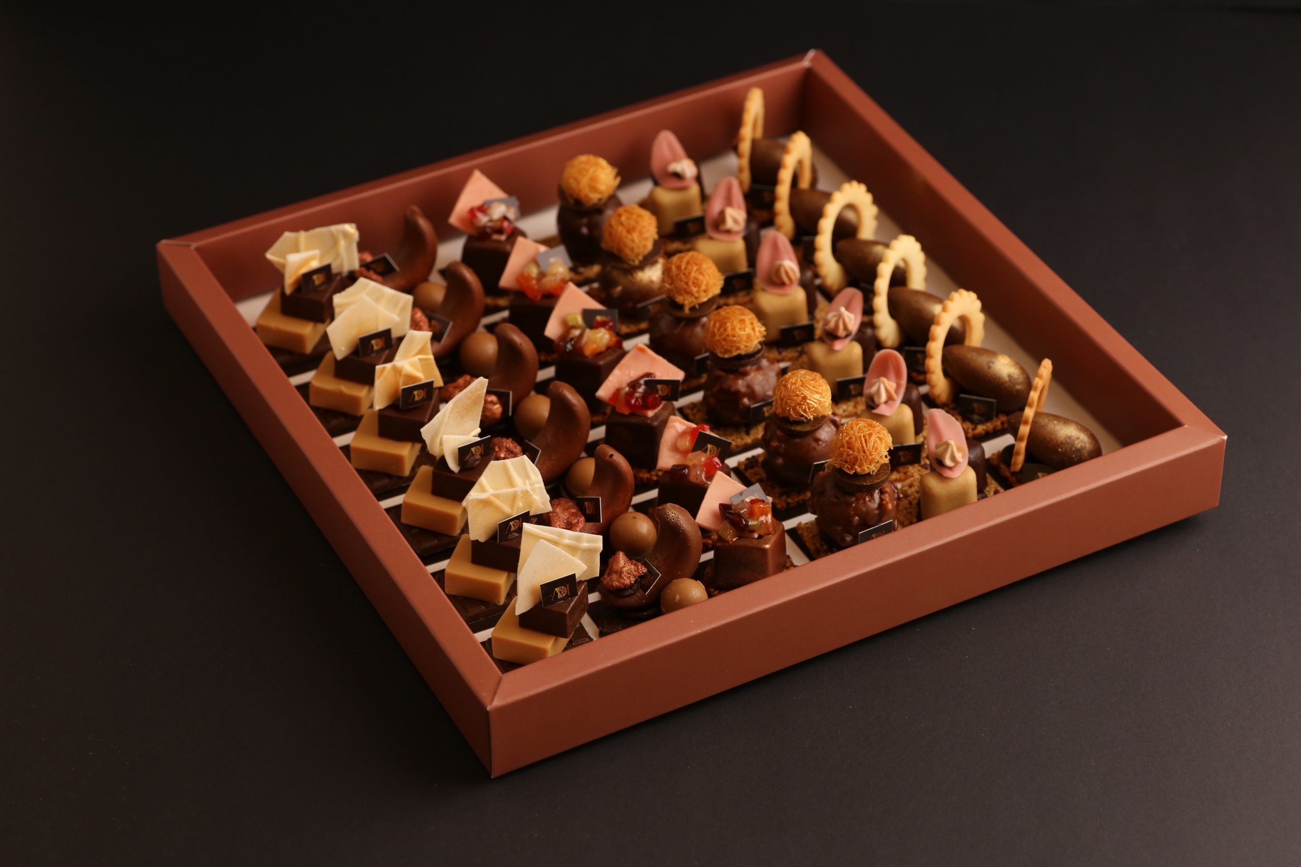 מארז מהודר המכיל 40 פטיפורים, מעוטר בסרטי סאטן תואמים וניתן בשקית בד ממותגת.